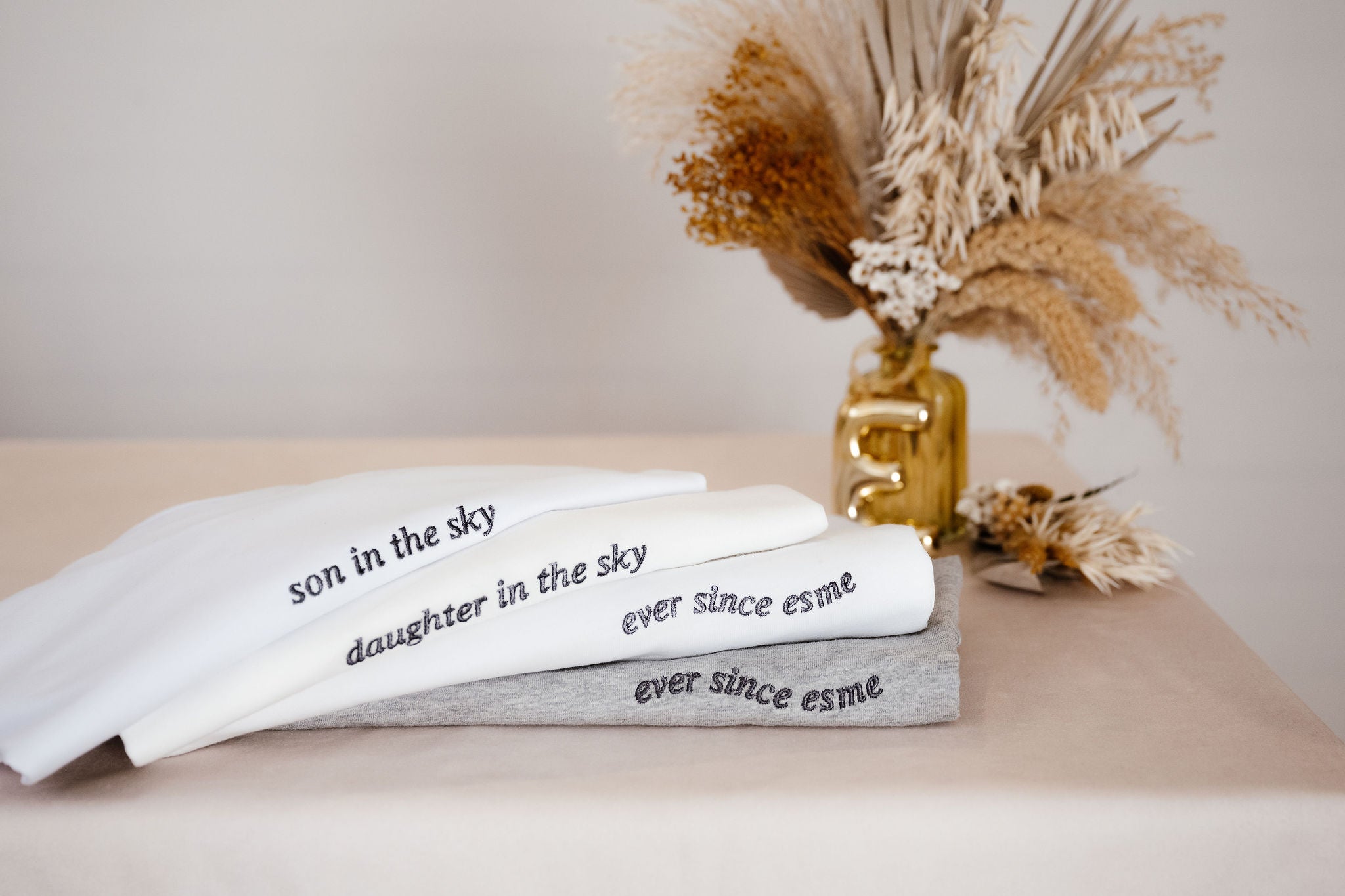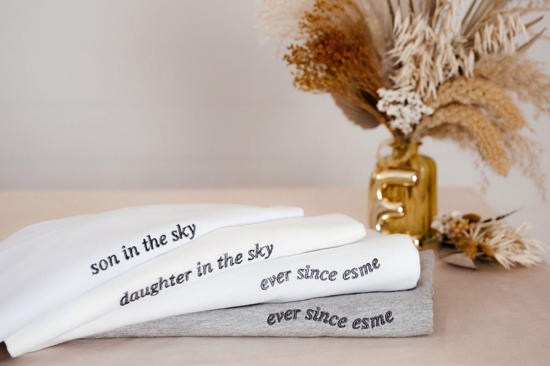 I asked if I could have a custom made jumper for an adult that said daughter in the sky. My request was accepted and it's absolutely perfect. I love wearing it to honour my angel. Ever Since Esme has helped me be able to honour her in my own way whenever I want thanks to this jumper.