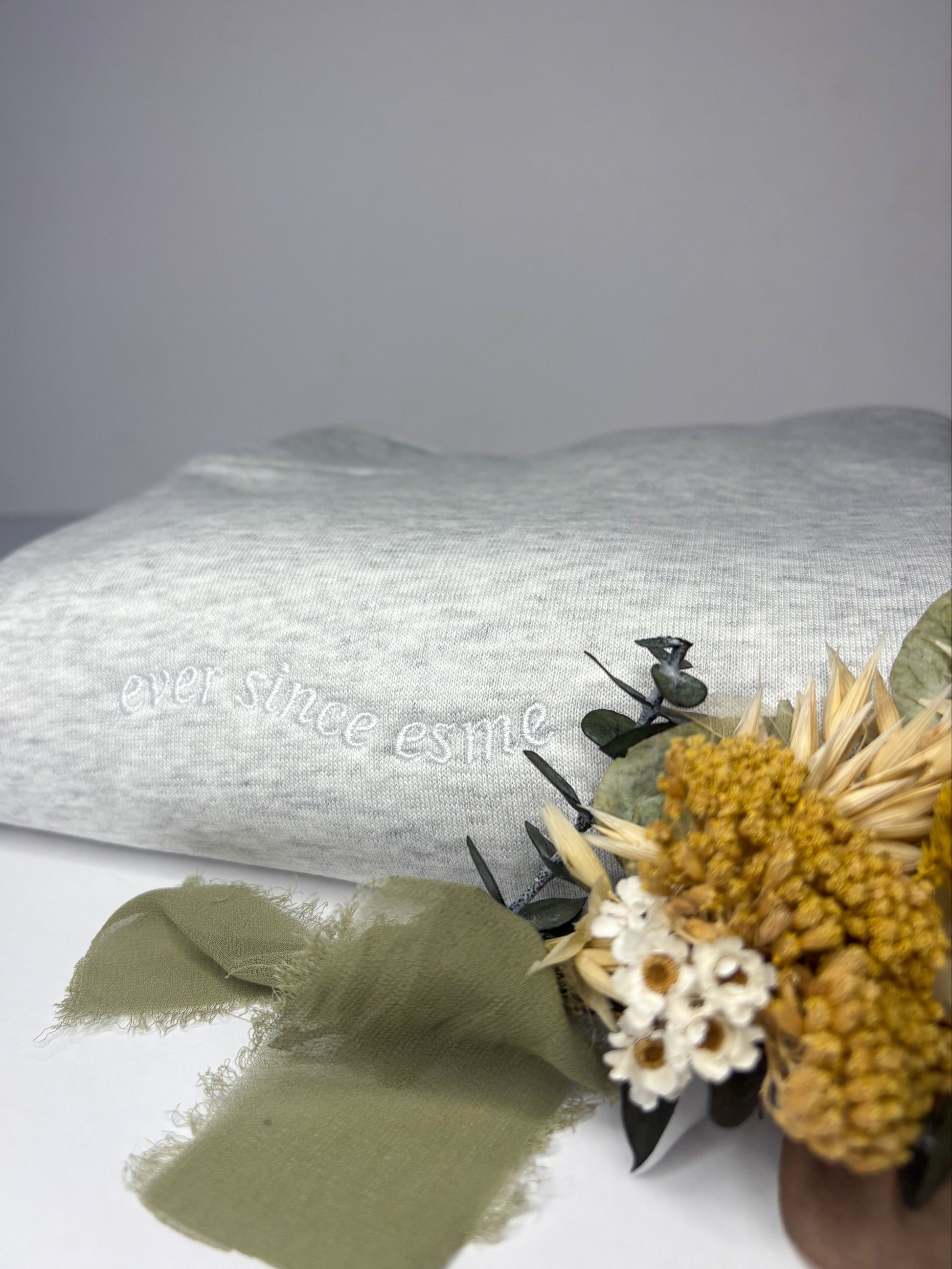 Wear your loved one's name with pride in our new 'Ever Since You' sweatshirt. Each piece is made to be personalised with your baby’s name to cherish their memory. The Embroidery is placed on the left side, perfectly positioned to be by your heart.